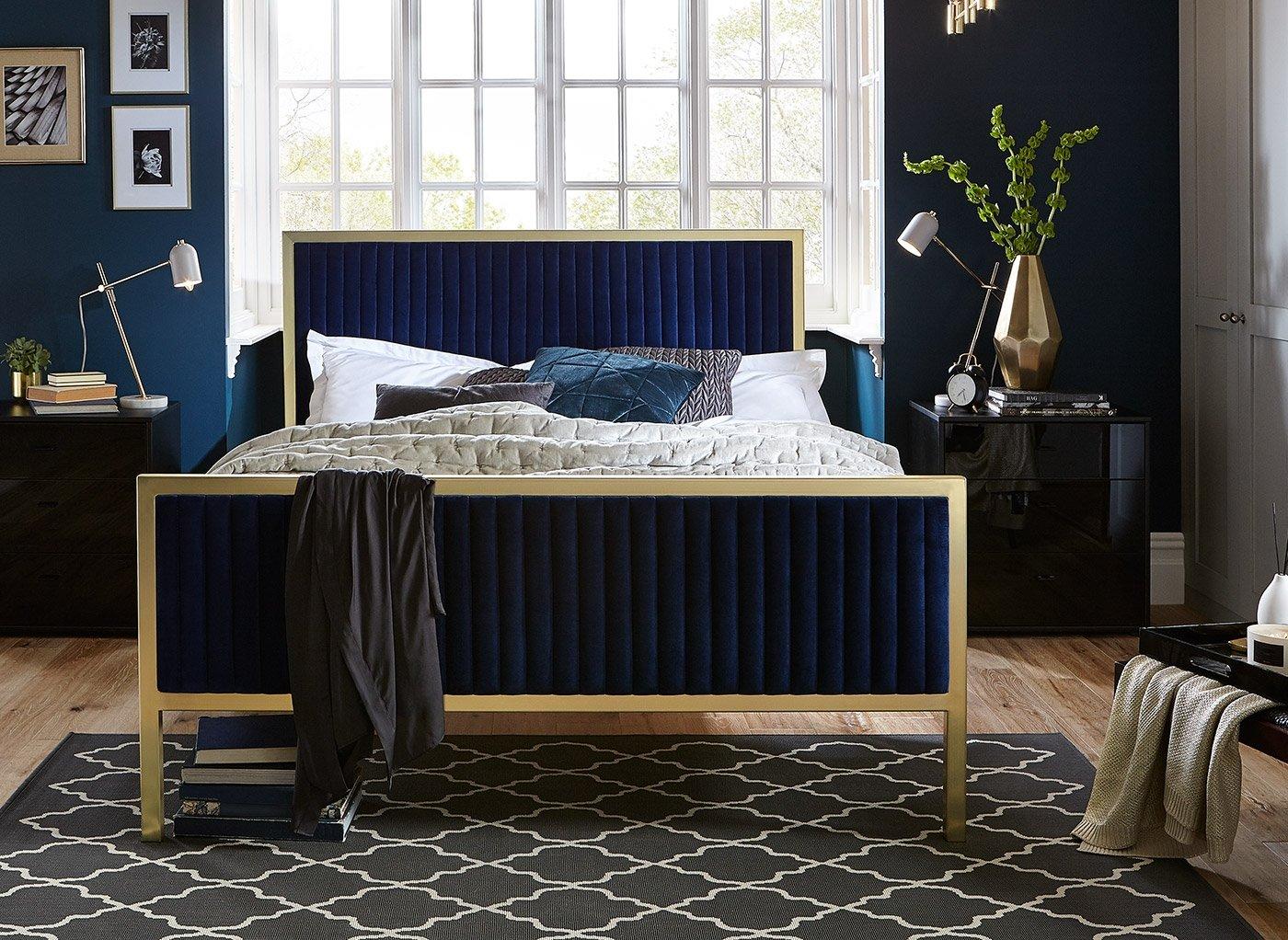 Addison Gold And Blue Metal Bed Frame 5 0 King Size Dreams