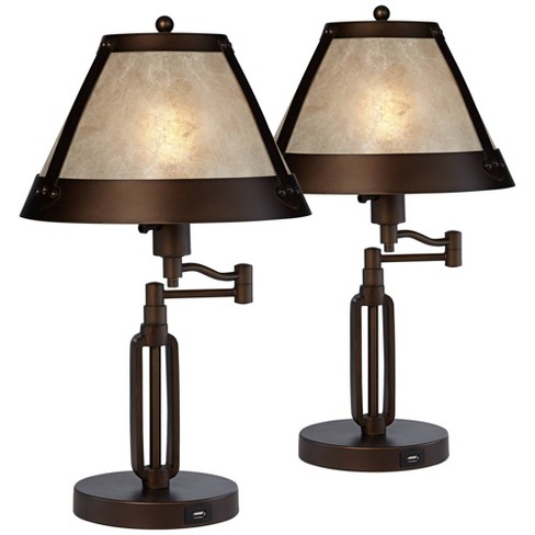 Franklin Iron Works Rustic Industrial Desk Lamps Set Of 2 With Usb